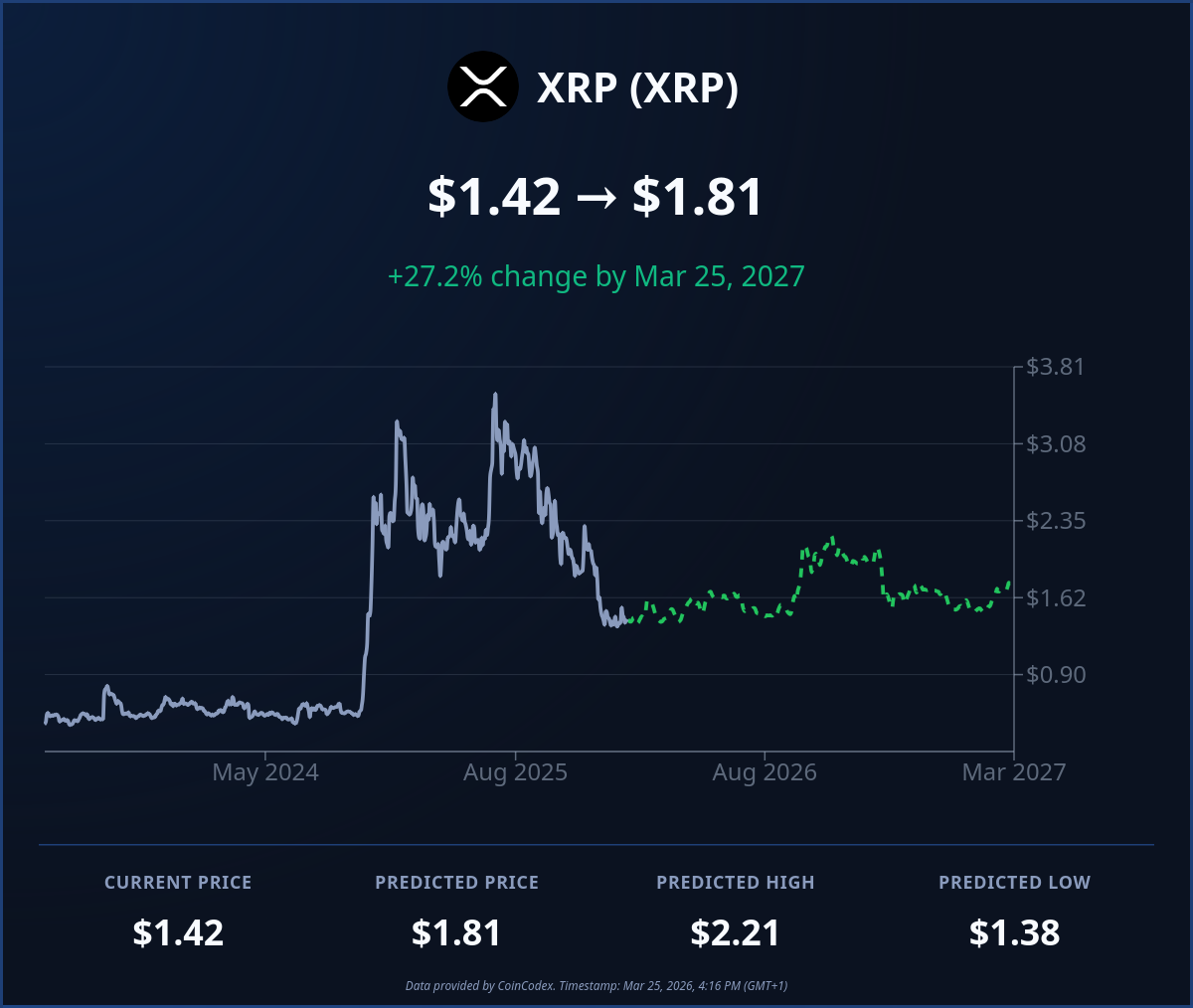 While this forecast is certainly positive, it does not expect XRP to come close to its $3.92 all-time high in the next year.