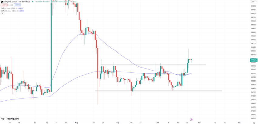 For now, traders are watching to see whether XRP can breach the next key price point at $0.60 before setting their sights on the $1 barrier.