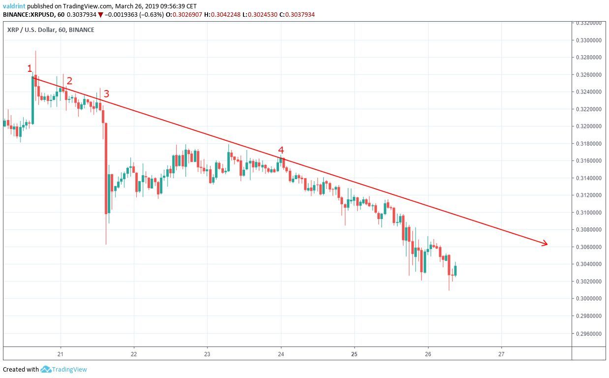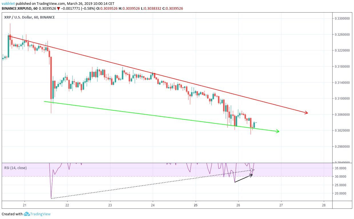 On March 21, 2019, the price of XRP (XRP) reached a high of $0.324 before a rapid drop brought prices below $0.306. After a gradual uptrend, prices again dropped At the time of writing on Mar 26, the price has yet to trade below $0.30.