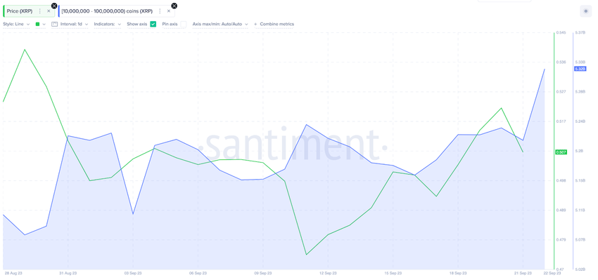 After languishing around the $0.50 territory for nearly 3-weeks, XRP price reclaimed the $0.52 territory on September 21. On-chain data reveals that a cluster of millionaire crypto whales holding 10 million to 100 million XRP appears to be the main driver behind the ongoing price resurgence.