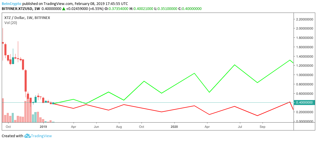[bctt tweet=”We at BeInCrypto expect the price of Tezos to sink to as low as $0.30 by mid-2019, before beginning its recovery in the second half of the year” username=”beincrypto”]