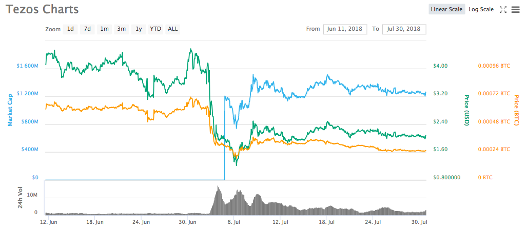Following the conclusion of its ICO in July 2017, Tezos took several months to become tradable on exchanges. It first started being listed on a major exchange in October 2017.