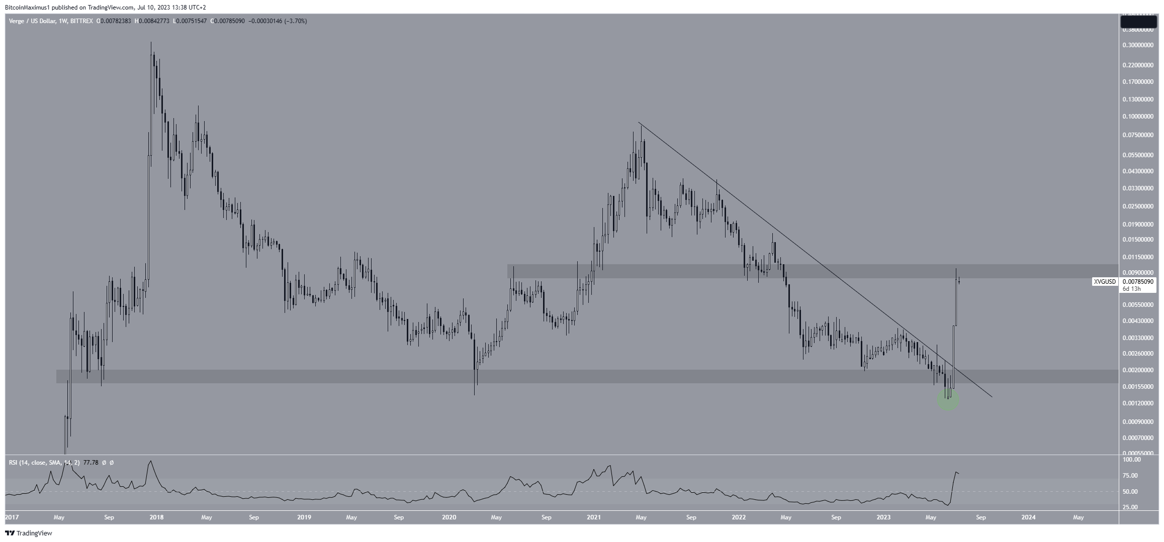A closer look at the daily timeframe shows that the XVG price has experienced a remarkable surge of nearly 600% since hitting its lowest point of the year on June 16. It outperformed the entire cryptocurrency market during this period, with a notable acceleration on July 2&3.