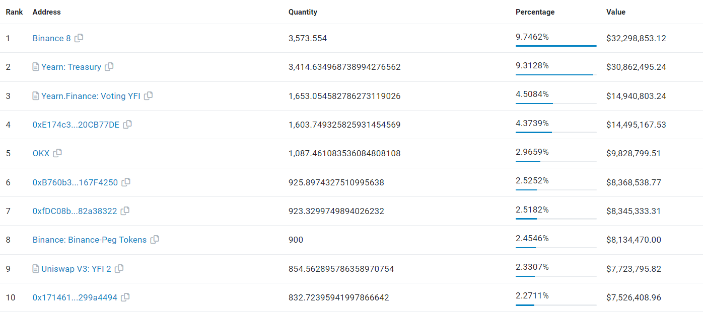 Observers have suggested that the project insiders caused the selling pressure, as nearly half of YFI’s supply is held in 10 wallets.