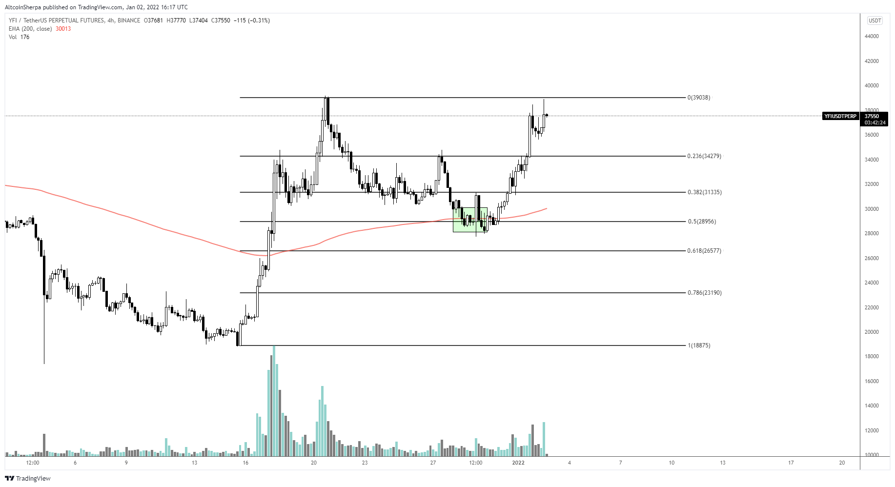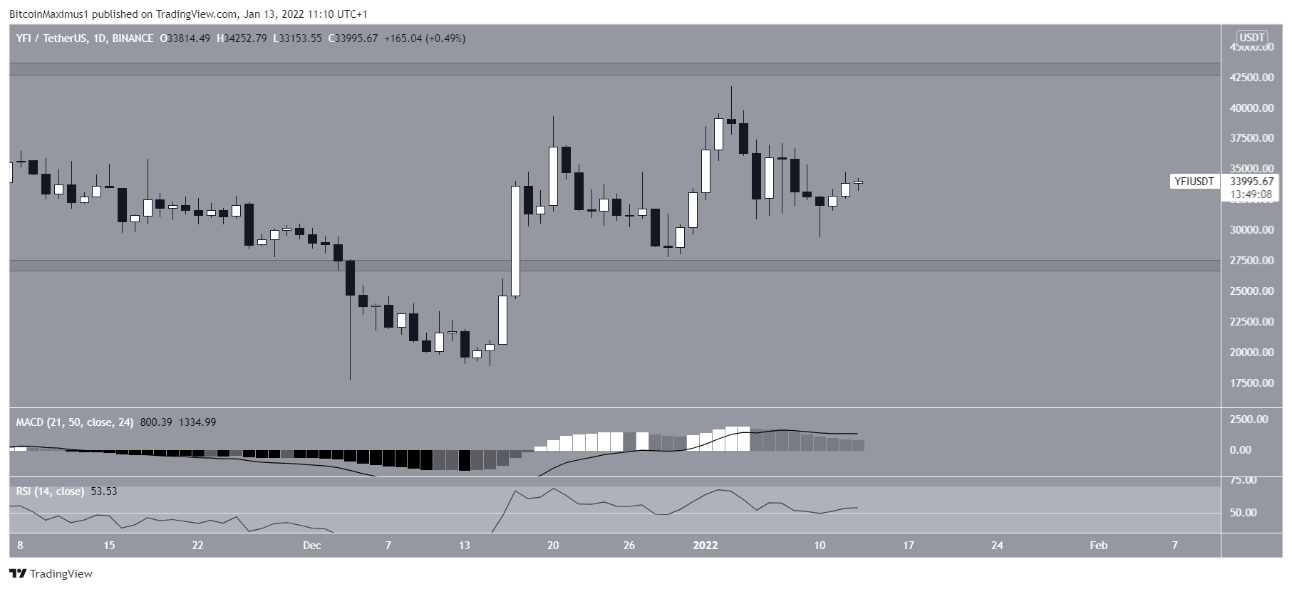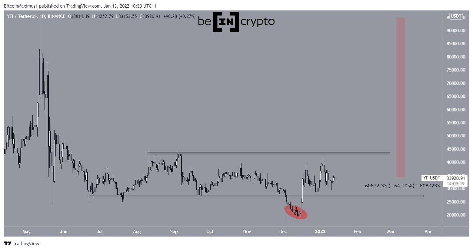 SponsoredCurrently, YFI is trading in the middle of its $27,500-$43,000 range. While the Dec 4 low caused a deviation below the support area of this range, it has reclaimed the level in what is a very bullish development.Â