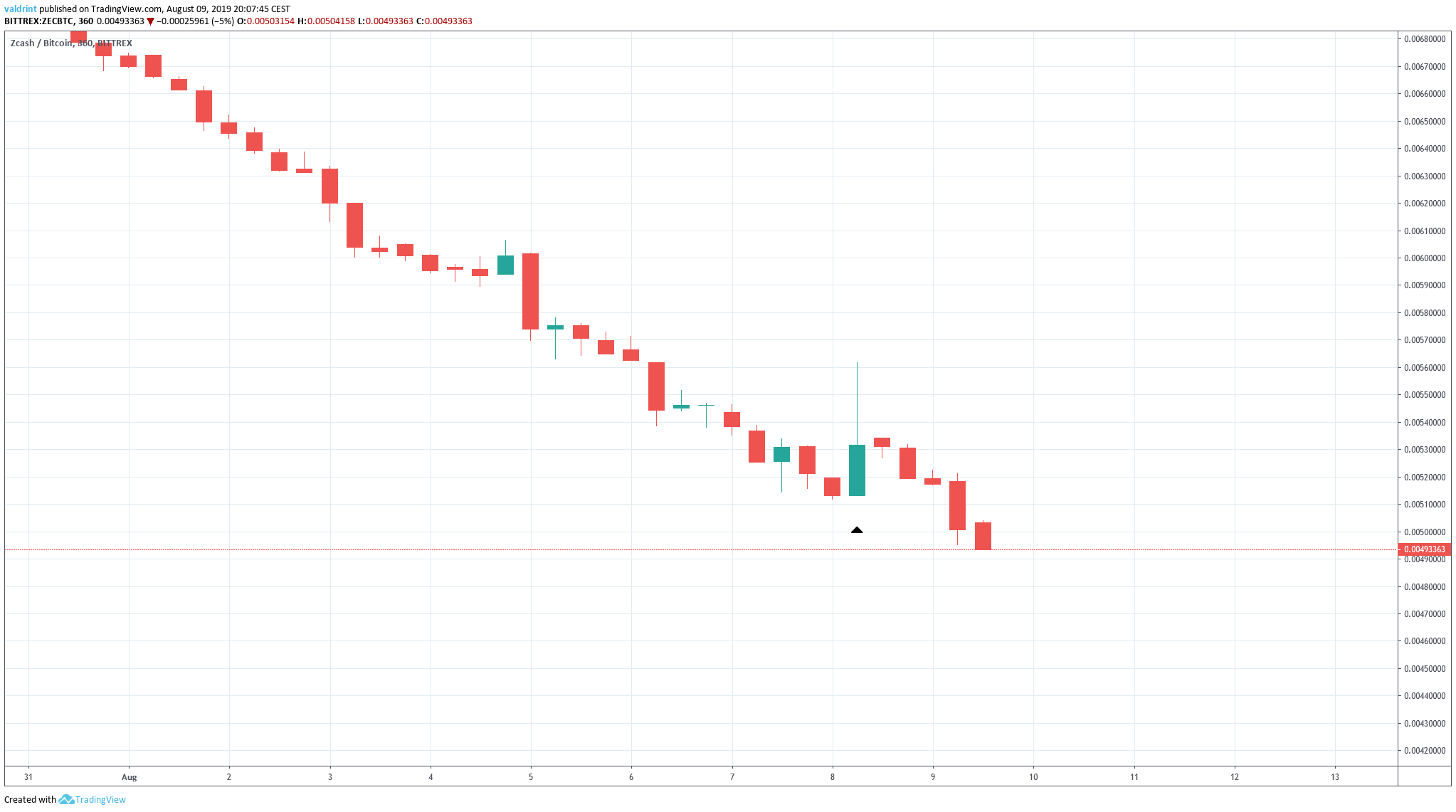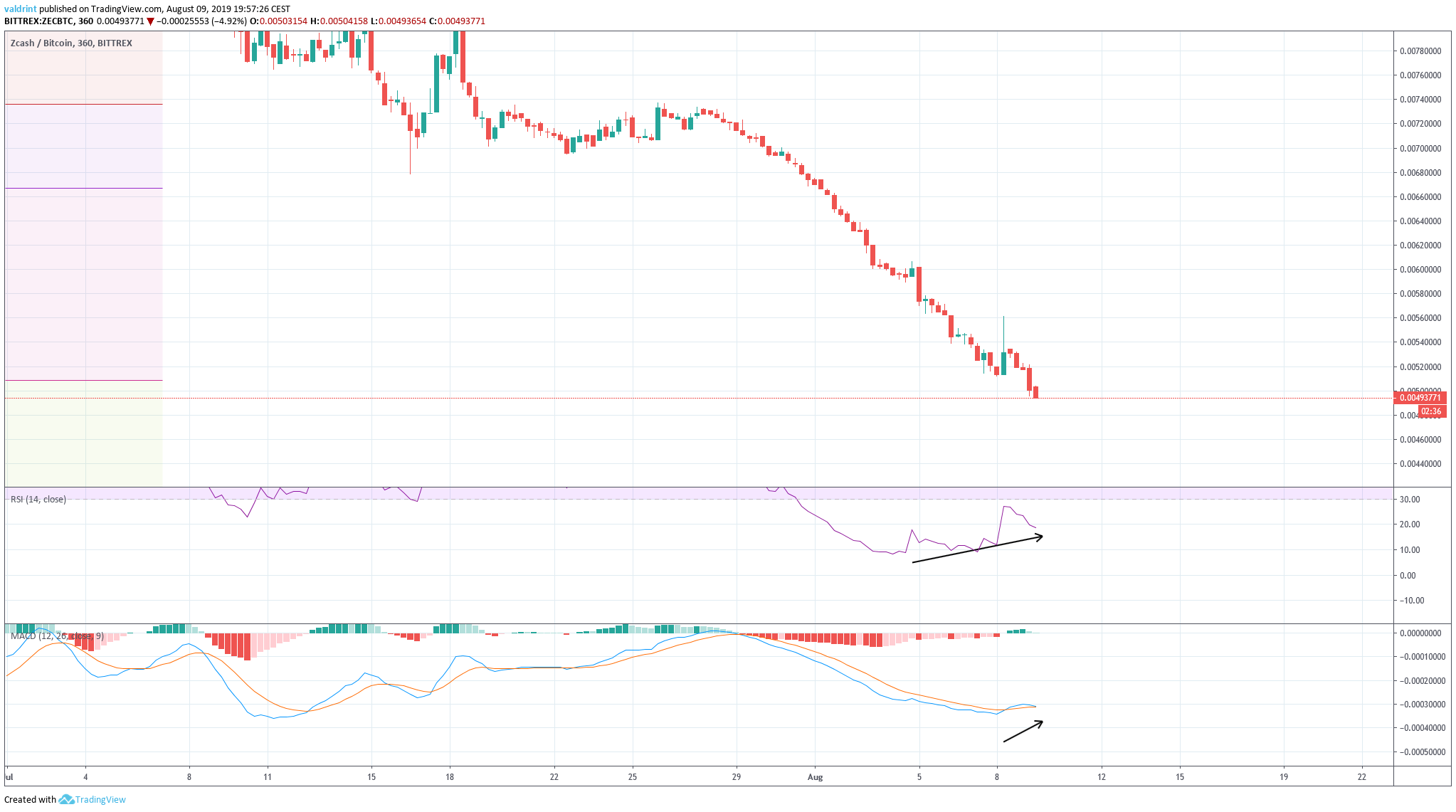 At the time of writing, ZEC was trading slightly below ₿0.0050.