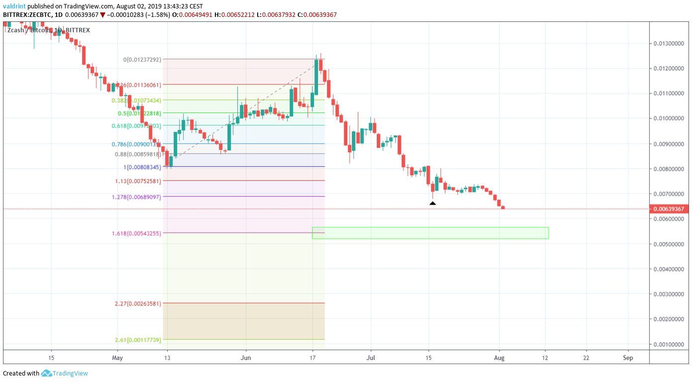 We can see that the Zcash price reacted nicely to the 1.278 fib level on July 15.
