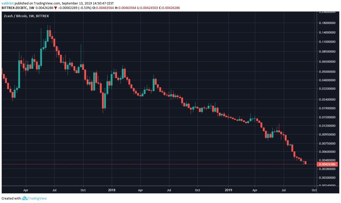 The ZEC price is trading at an all-time low.