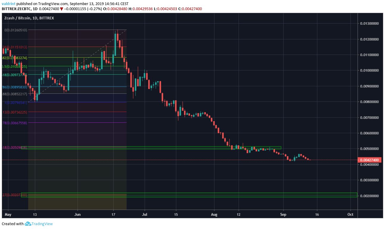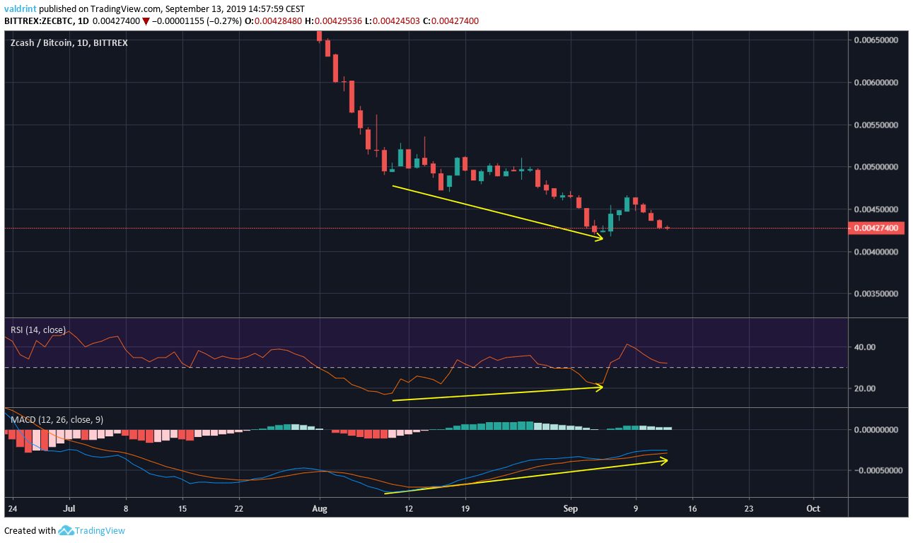 - ZEC/BTC is trading at an all-time low.